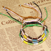 Bracelets en cordon ciré noués pour femmes, style simple bohème, faits à la main, perles Miyuki, perles de cristal, amitié