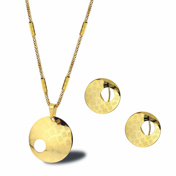 Ufficio signore di forma rotonda di moda da sposa donne oro placcato orecchini e collana festa in acciaio inox gioielli set