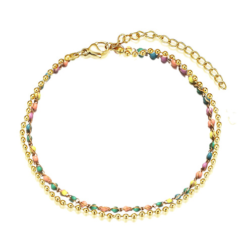 2層金メッキサマービーチステンレス鋼ビーズバルチェーン女性フットアンブレット