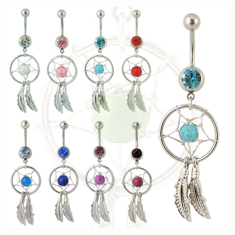 手術用スチールクリスタルジルコンニッケルフリードリームキャッチャードリームネットジュエリーボディジュエリーセクシー腹ボタンへそピアスリング