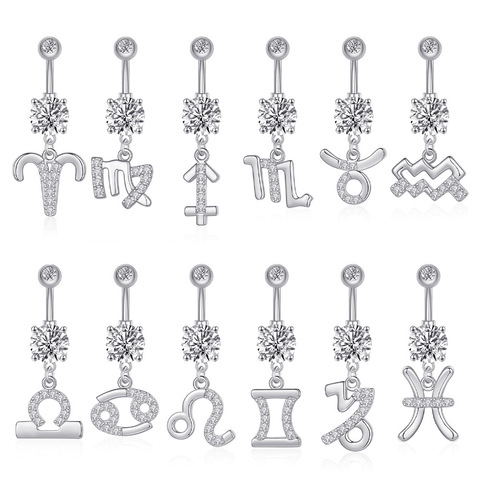 キュービックジルコン医療用セクシー手術鋼製ゾディアックジュエリーボディネーブルリング腹ボタンピアスリング