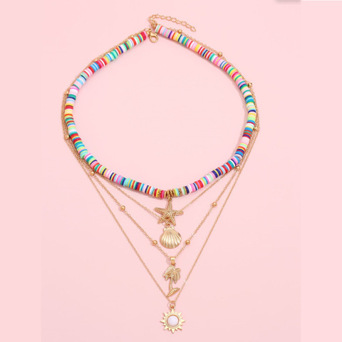 ソフトセラミックチョーカー亜鉛合金ゴールドメタルレディース4ムリティレイヤーヒトデシェル太陽ココナッツツリーネックレスレディースジュエリー