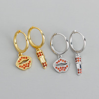 レディース流行ファッションシルバー925スターリングセックスリップリップスティックドロップジュエリーイヤリング女性用フープイヤリング