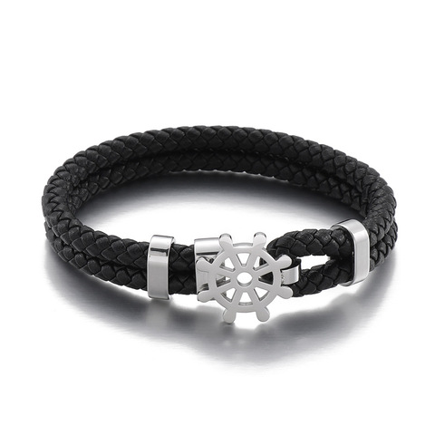 クール1.3cm幅マンリーアンカーサインステンレス鋼留め金牛革本革編組ラップカフブレスレット男性用バングル