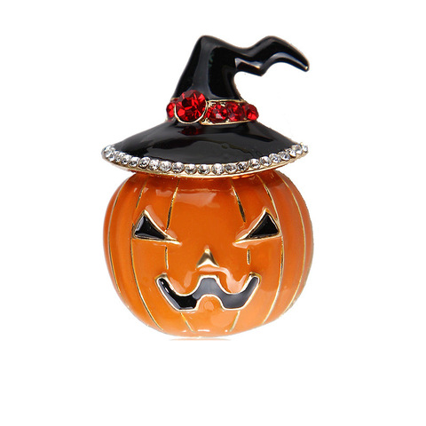 可愛い漫画クリスタル亜鉛合金女性エナメル帽子メンズハロウィンジュエリーパンプキンブローチピン