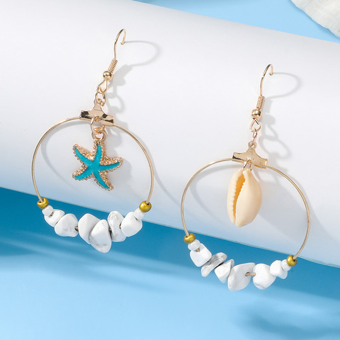 クリエイティブボヘミアン天然石シーシェル形状ペンダントダングル流行の金メッキBoho女性用フープイヤリング女性用