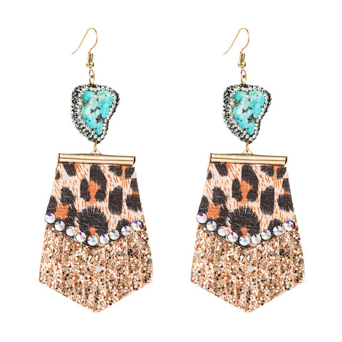 新作流行オフィスレディーファッションドロップ自然石ラインストーンヒョウPUレザースパンコールフック女性ジュエリーイヤリング