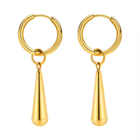 Insホットミニマリスト女性用ステンレススチール18k金メッキ幾何学ジュエリー涙滴デザインペンダントループイヤリング