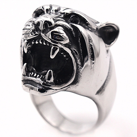 Geschenk Punk Hochwertige Metall Titan Edelstahl 316L Vintage Silber Leopard Kopf Schmuck Ring für Männer