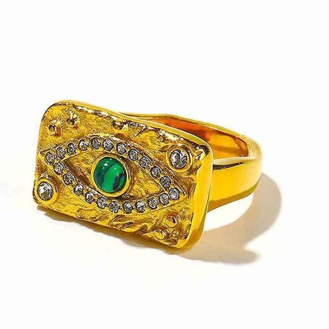 Zirkonia Malachit Auge wasserdicht Vintage 18 Karat Gold Farbe Schmuck Trinidad Evil Eye Lucky Edelstahl Ring für Frau