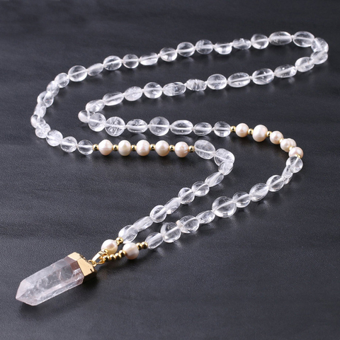 Longo 32 Polegada Mala Jóias Ponto de Cristal Natural Pingente Ametistas Branco Raw Quartzo Chunky Beads Atado Handmade Colar