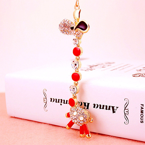 Großhandel Schöne Süße Gold platte Metall Zink legierung Promotion Emaillierte Kristall Tier Anhänger Giraffe Schlüssel anhänger Schlüssel anhänger für Tasche