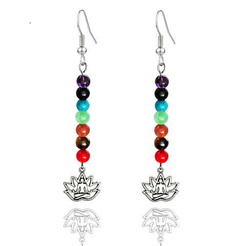 ใหม่ธรรมชาติหินเงินทันสมัยโยคะแฟชั่นลดลง7เจ็ดจักระลูกปัดต่างหูเครื่องประดับผู้หญิง