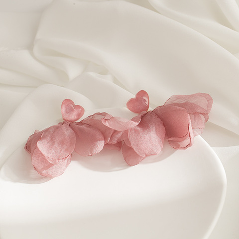 ต่างหูแฟชั่นสไตล์ยุโรปหรูหราห้อยระย้าผ้ามุ้งลูกไม้สีชมพูสำหรับผู้หญิง