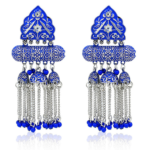 แฟชั่นผู้หญิงผู้หญิงเครื่องประดับอัญมณีโบฮีเมีย jhumka อินเดียเคลือบสีฟ้าห้อยต่องแต่งพู่ต่างหูสำหรับผู้หญิง