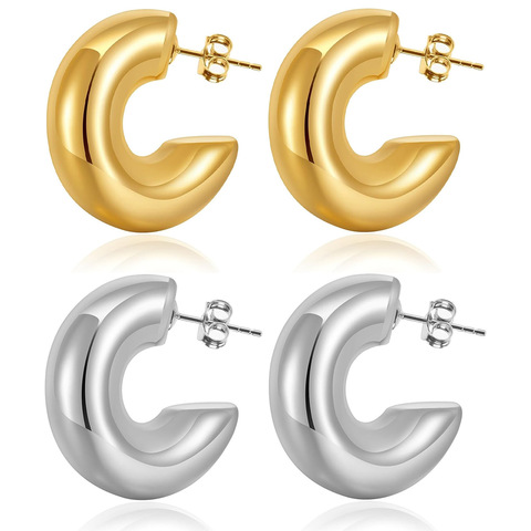 ต่างหูห่วงแบบหนาและหนาทำจากสเตนเลสกึ่งโดนัทสีทองแบบครึ่งพระจันทร์สวยงาม